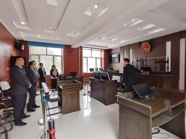 在进入法庭的第一站,普阳人民法庭干警向中国农业银行股份有限公司宝泉岭普阳支行工作人员讲解了法院安检工作的重要性与必要性。随后,大家依次参观了诉讼服务窗口、审判庭等区域,全方位了解法庭的功能布局与工作场景。干警用通俗语言拆解立案、举证、调解等关键环节,同时详细介绍了法庭推出的各项便民利民举措,让大家直观感受到司法服务的温度。