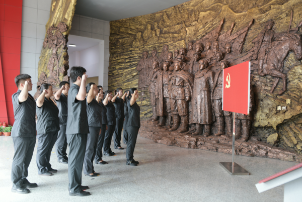 “我志愿加入中国共产党,拥护党的纲领,遵守党的章程……”活动最后,在领誓人的带领下,干警们举起右拳,面向党旗庄严宣誓,在铿锵有力的宣誓声中更加坚定了自己的初心与使命。