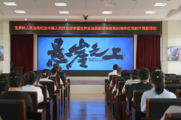 为纪念中国人民抗日战争暨世界反法西斯战争胜利80周年,传承红色基因,进一步激发全院干警的爱国热情和使命担当,近日,宝泉岭人民法院组织干警集体观看电影《悬崖之上》。
