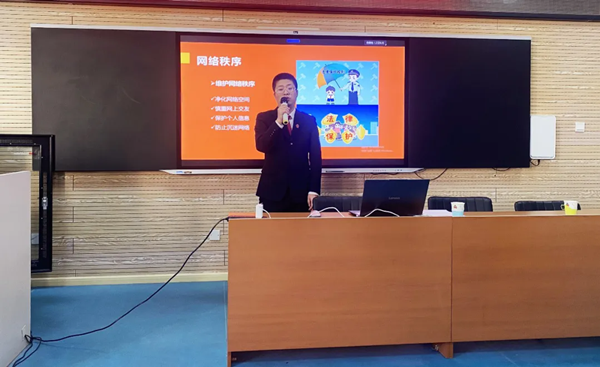 在宝泉岭中心小学校,宝泉岭人民法院民事审判庭副庭长翟拓以“知法、懂法、守法、用法”为主线,围绕预防校园欺凌、防溺水、预防网络诈骗、交通安全等与学生生活学习紧密相关的内容,通过典型案例和情景讲解,将法律知识讲深讲透。引导同学们尊法、学法、守法、用法,学会运用法律武器维护自身合法权益。