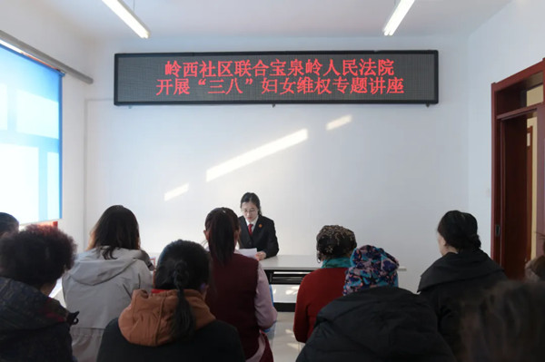 春风拂面,花开有声,在“三八”国际妇女节来临之际,为进一步增强妇女的法治意识和依法维权能力,营造尊重妇女、维护妇女合法权益的良好社会氛围,3月5日,宝泉岭人民法院干警分别走进岭西、岭北社区,开展“三八”国际妇女节专题普法讲座,让法治阳光照亮“她权益”守护之路。